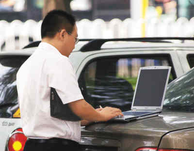 忙里偷閑,街頭上網(wǎng)