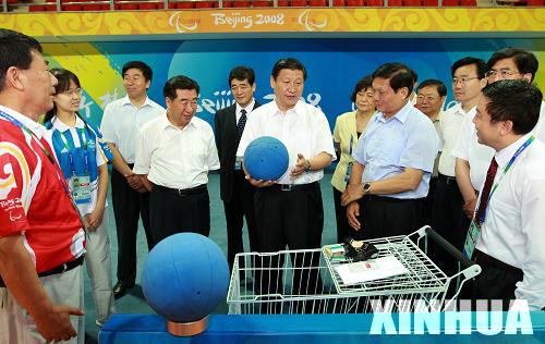隨后,習近平一行乘車來到北京理工大學體育館和國家會議中心擊劍館,分別視察了盲人門球比賽和硬地滾球比賽場地、無障礙設施以及無障礙觀賽平臺等,熱情看望了正在訓練場訓練的盲人門球運動員,同他們親切交談,勉勵他們自強不息、奮勇爭先,在殘奧會上取得運動成績和精神文明雙豐收。