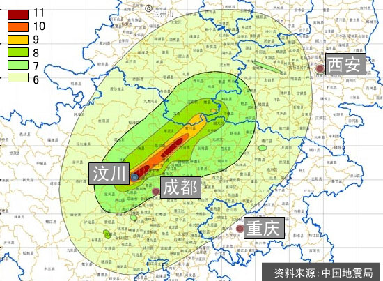 汶川8.0級(jí)地震發(fā)生后,中國地震局組織專家赴四川、甘肅、陜西、重慶、云南、寧夏等省(自治區(qū)、直轄市)開展了現(xiàn)場調(diào)查,調(diào)查面積達(dá)50萬平方公里,調(diào)查點(diǎn)4150個(gè),在實(shí)地調(diào)查基礎(chǔ)上,編繪了汶川8.0級(jí)地震烈度分布圖。