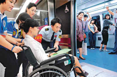 在北京,和洪先生一樣出行不方便的殘疾人士在近幾年真切感受到了周圍的變化。車站站臺衛(wèi)生間開始配有殘疾人專用廁位,低位售票機和低位電話亭越來越多,70輛出租車組成的無障礙溫馨出租車隊在北京大街小巷穿梭,還有2000多輛低底盤的公交車。以前不敢奢望去故宮、長城等名勝古跡,在無障礙改造后,“我們也能到長城當一回好漢了!”洪先生的笑聲在地鐵口分外響亮。
