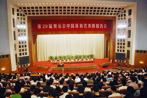 9月11日,第29屆奧運會中國體育代表團報告會在北京人民大會堂舉行。新華社發(fā)(楊慧峰 攝)