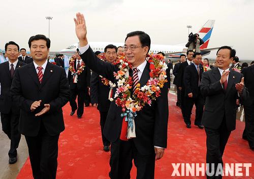 9月22日,以中共中央政治局常委、中央紀(jì)委書記賀國強(qiáng)為團(tuán)長的中央代表團(tuán)乘專機(jī)抵達(dá)銀川,參加寧夏回族自治區(qū)成立50周年慶;顒(dòng)。新華社記者 高潔 攝