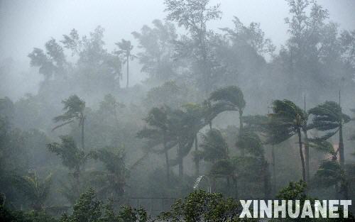 2008年9月24日 臺風(fēng)“黑格比”登陸廣東 湛江風(fēng)雨交加 9月24日晨,廣東湛江霞山區(qū)海濱的椰子樹在狂風(fēng)暴雨中搖擺。 今年第14號強臺風(fēng)“黑格比”24日6時45分在廣東省電白縣陳村鎮(zhèn)沿海登陸。受其影響,湛江地區(qū)普降暴雨,并伴有大風(fēng)。 新華社記者 劉大偉 攝