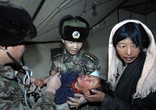 10月7日,西藏軍區(qū)總醫(yī)院的醫(yī)務(wù)人員在給一名藏族孩子檢查身體。10月6日,拉薩市當(dāng)雄縣發(fā)生6.6級(jí)地震。地震發(fā)生之后,西藏各部門迅速投入到抗震救災(zāi)中。目前已有700多名救援人員抵達(dá)災(zāi)區(qū)參加救援,救援工作順利進(jìn)行。受災(zāi)群眾目前已得到妥善安置。新華社記者 覺(jué)果 攝