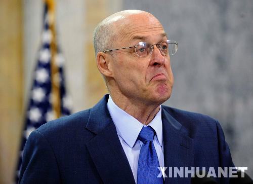 10月14日,美國財長保爾森在華盛頓舉行的聲明會上發(fā)言。當(dāng)日,保爾森和美聯(lián)儲主席伯南克及總統(tǒng)金融工作市場小組的成員在位于華盛頓的美國財政部發(fā)表聲明,公布新救市方案的詳情。新華社記者張巖攝