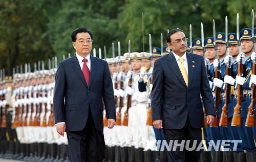 10月15日,國家主席胡錦濤在北京人民大會堂東門外廣場舉行儀式,歡迎巴基斯坦總統(tǒng)扎爾達里訪華。新華社記者 高潔 攝