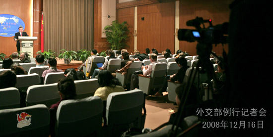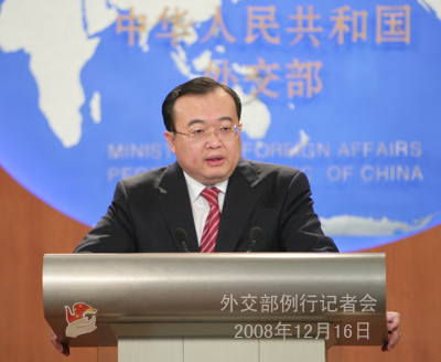 2008年12月16日下午,外交部發(fā)言人劉建超舉行例行記者會,就六方會談、中法關(guān)系、中國與印尼關(guān)系等答問。