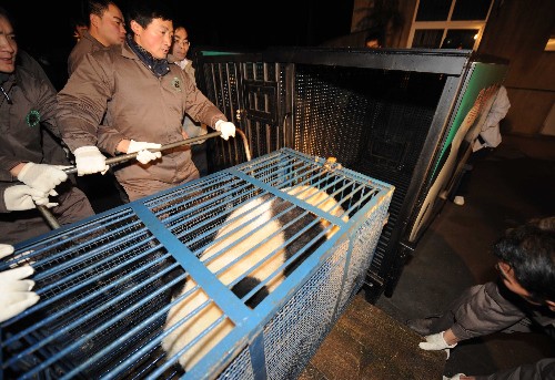 新華社快訊:“團(tuán)團(tuán)”“圓圓”吃完了在碧峰峽基地的最后一頓早餐——胡蘿卜和窩窩頭,已進(jìn)入轉(zhuǎn)運(yùn)籠。