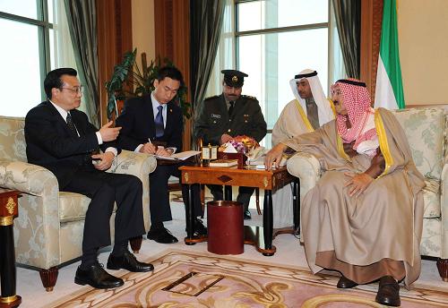 12月28日,科威特埃米爾(國(guó)家元首)艾哈邁德·薩巴赫在首都科威特城會(huì)見中國(guó)國(guó)務(wù)院副總理李克強(qiáng)。新華社記者 饒愛民 攝