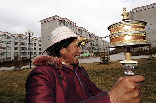 1月6日,拉薩首批廉租房住戶白瑪老阿媽在院里搖動轉(zhuǎn)經(jīng)筒。 據(jù)了解,2008年西藏自治區(qū)在拉薩市和其他6個地區(qū)建設(shè)了4564套廉租住房,部分城鎮(zhèn)低收入困難群眾住房條件得到改善。西藏目前的廉租住房制度主要針對國有企業(yè)住房困難職工和城鎮(zhèn)最低收入住房困難家庭,通過發(fā)放租賃住房補貼和實物配租兩種方式實施。西藏還將擴大廉租住房的受益人群和建設(shè)地區(qū)。從2009年到2010年末,西藏將逐步把廉租住房保障對象由目前的城鎮(zhèn)最低收入家庭擴大到城鎮(zhèn)低收入家庭。 新華社記者 覺果 攝