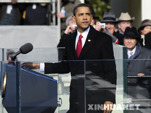 1月20日,美國總統(tǒng)奧巴馬在就職儀式上發(fā)表就職演說。當日,奧巴馬在美國國會大廈西側(cè)的露天平臺上正式宣誓就任美國第44任總統(tǒng)。 新華社記者張巖攝