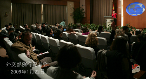 2009年1月22日,外交部發(fā)言人姜瑜舉行例行記者會(huì),主要就中美、中法關(guān)系,中東局勢(shì)等答記者問(wèn)。