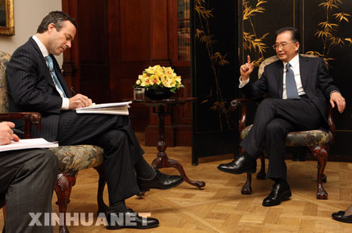2月1日,中國(guó)國(guó)務(wù)院總理溫家寶在英國(guó)倫敦接受《金融時(shí)報(bào)》主編巴伯的專訪。新華社記者姚大偉攝