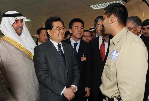 2月11日,正在沙特阿拉伯進(jìn)行國事訪問的國家主席胡錦濤在利雅得參觀中沙經(jīng)濟(jì)和科技合作項(xiàng)目。這是胡錦濤主席在中國公司承建的利雅得水泥公司同沙方員工親切交談。 新華社記者 饒愛民 攝