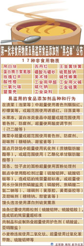 近年來,隨著一系列有害食品添加物曝光,人們無奈地發(fā)現(xiàn),自己熟悉的化學(xué)名詞越來越多:三聚氰胺、蘇丹紅、吊白塊……面對泛濫的食品添加物,人們倍思回歸自然。能否讓百姓不再兼任“化學(xué)家”?新華社“新華視點”記者專訪了衛(wèi)生部、蒙牛乳業(yè)、有關(guān)專家和參加兩會的代表委員。為配合全國打擊違法添加非食用物質(zhì)和濫用食品添加劑專項整治工作的開展,專項整治領(lǐng)導(dǎo)小組2008年12月下發(fā)通知,公布第一批“食品中可能違法添加的非食用物質(zhì)和易濫用的食品添加劑品種名單”,其中包括17種非食用物質(zhì)和10種易濫用的食品添加劑(2008年12月15日資料圖表)。新華社發(fā)