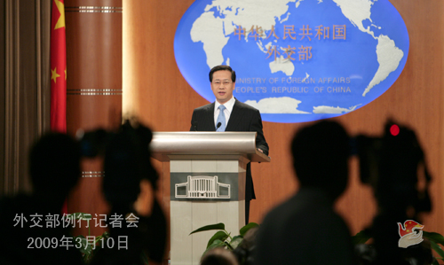 2009年3月10日,外交部發(fā)言人馬朝旭舉行例行記者會(huì),就朝鮮內(nèi)閣總理訪華、津巴布韋總理夫婦遭遇車禍、美國(guó)海軍監(jiān)測(cè)船在中國(guó)專屬經(jīng)濟(jì)區(qū)活動(dòng)等回答了記者提問。