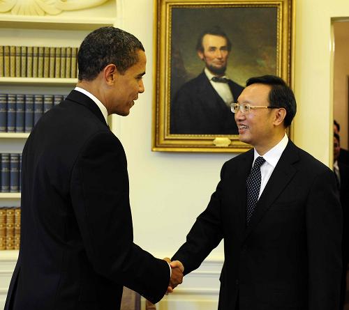 新華社華盛頓3月12日電(記者嚴(yán)峰 楊晴川)美國(guó)總統(tǒng)奧巴馬當(dāng)?shù)貢r(shí)間12日下午在白宮會(huì)見(jiàn)了中國(guó)外交部長(zhǎng)楊潔篪。美國(guó)副總統(tǒng)拜登、國(guó)務(wù)卿希拉里·克林頓、總統(tǒng)國(guó)家安全事務(wù)助理瓊斯會(huì)見(jiàn)時(shí)在座。