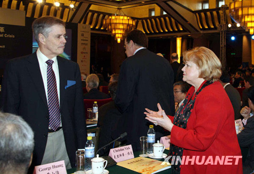 這是會前與會者在交談。3月22日,中國發(fā)展高層論壇2009在北京開幕。新華社記者 高學余 攝