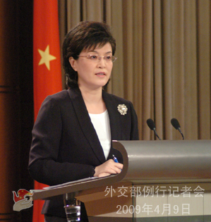 2009年4月9日,外交部發(fā)言人姜瑜舉行例行記者會,主要就博鰲論壇2009年年會、朝鮮發(fā)射衛(wèi)星、伊核問題等答記者問。