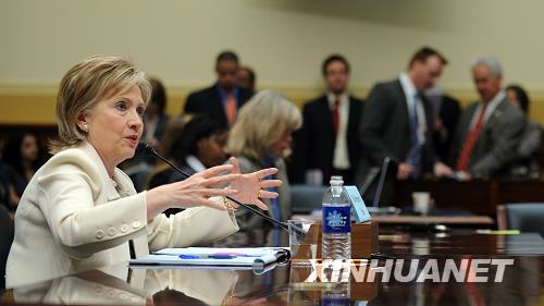 4月22日,美國國務卿希拉里·克林頓在華盛頓出席國會眾議院外交關系委員會舉行的聽證會。希拉里在聽證會上說,美方呼吁巴基斯坦政府采取有效措施,阻止塔利班武裝人員和極端分子勢力在巴基斯坦國內(nèi)滲透。新華社/法新