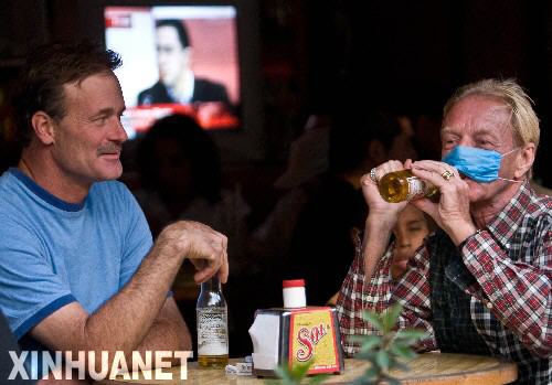 4月25日,在墨西哥首都墨西哥城的繁華地區(qū),游客帶著口罩用餐、飲酒。當日,墨西哥政府派遣警力和士兵為墨西哥城市民免費分發(fā)600萬只口罩。據(jù)報道,截至目前,墨西哥已發(fā)現(xiàn)80多人死于流感,其中至少20人確診感染了A/H1N1型豬流感病毒。新華社發(fā)(戴維攝)