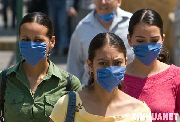4月26日,幾名墨西哥城市民戴著口罩走在市中心的路上。當日,墨西哥城市長馬賽洛·埃布拉德宣布,該市在最近24小時內有5名豬流感疑似患者死亡,致使首都的豬流感疑似患者死亡總人數(shù)升至15人。墨西哥城市政府臨時決定追加發(fā)放100萬只免費口罩。新華社發(fā)(戴維攝)