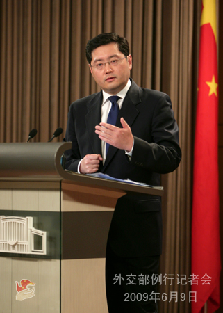 2009年6月9日,外交部發(fā)言人秦剛舉行例行記者會。答問如下: