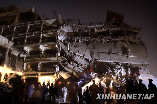 爆炸發(fā)生在保安措施嚴密的珍珠大陸飯店。有目擊者說,爆炸發(fā)生在酒店大堂,炸壞了酒店大堂和一樓。酒店外40多輛汽車被炸毀,其中有掛著聯(lián)合國牌照的車輛。救援人員說,傷者中有外國人。