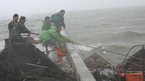 6月21日,福建省漳州市邊防支隊官兵幫助漁民加固漁船,防御熱帶風暴“蓮花”。6月21日上午,中央氣象臺發(fā)布了臺風橙色警報。今年第三號強熱帶風暴“蓮花”于當天上午減弱為熱帶風暴,以每小時10公里的速度緩慢逼近福建南部的廈門、漳州、泉州等地。目前閩南漁船已全部進港避風,各地防臺風工作已全面展開。新華社發(fā)(徐國慶 攝)
