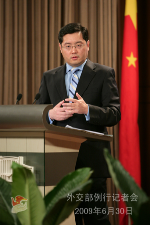 2009年6月30日,外交部發(fā)言人秦剛舉行例行記者會(huì)。答問如下: