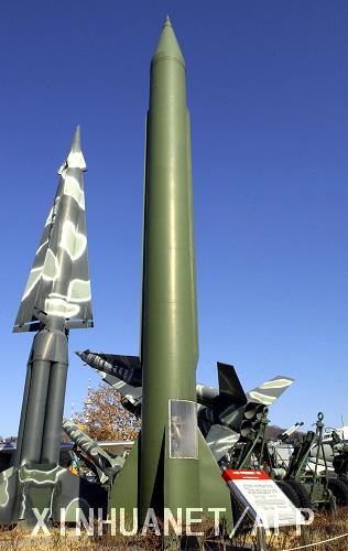 韓國聯(lián)合通訊社7月4日?qǐng)?bào)道,朝鮮當(dāng)天中午在東海岸元山地區(qū)向海上發(fā)射了第四枚導(dǎo)彈。圖為在韓國首都首爾展示的飛毛腿導(dǎo)彈模型(攝于2002年12月11日)。 新華社/法新