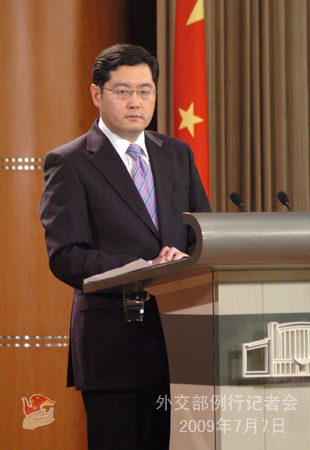 2009年7月7日,外交部發(fā)言人秦剛舉行例行記者會。答問如下: