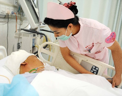 新疆軍區(qū)總醫(yī)院還借鑒抗震救災(zāi)中的成功做法,運(yùn)用“批量傷員救治預(yù)案”,組織科室主任和醫(yī)學(xué)專家現(xiàn)場(chǎng)救治,對(duì)沒(méi)有姓名的傷員統(tǒng)一編號(hào),逐個(gè)標(biāo)記,每個(gè)傷員由2名醫(yī)生、4名護(hù)士全程負(fù)責(zé),危重病人救治成功率高達(dá)98%。