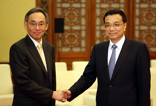 7月16日,國務(wù)院副總理李克強在北京人民大會堂會見美國能源部長朱棣文。新華社記者 姚大偉 攝