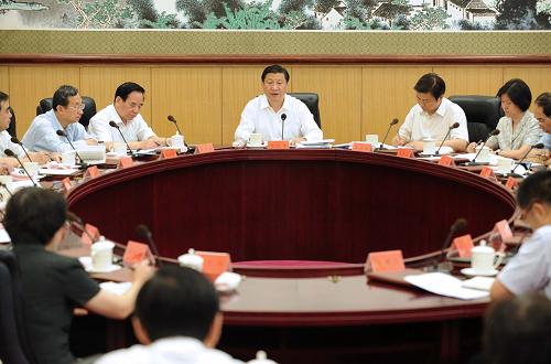 7月21日,中共中央政治局常委、中央書記處書記、國家副主席、中央深入學(xué)習(xí)實(shí)踐科學(xué)發(fā)展觀活動(dòng)領(lǐng)導(dǎo)小組組長習(xí)近平,主持召開中央深入學(xué)習(xí)實(shí)踐科學(xué)發(fā)展觀活動(dòng)領(lǐng)導(dǎo)小組第九次會(huì)議并講話。新華社記者 馬占成 攝