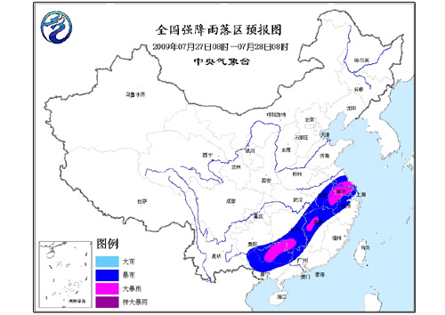 預(yù)計,今天白天到夜間,貴州南部、廣西大部、廣東西北部、湖南中南部、江西中北部、湖北東南部、蘇皖中南部、浙江北部以及上海等地有暴雨,其中,廣西北部、湖南西南部、江西西北部、蘇皖南部等地的部分地區(qū)有大暴雨。上述部分地區(qū)并伴有短時雷雨大風(fēng)等強對流天氣。