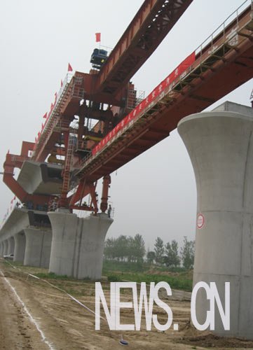圖為正在建設的京滬高鐵天津特大橋施工現(xiàn)場。新華網(wǎng) 俞瑋 攝