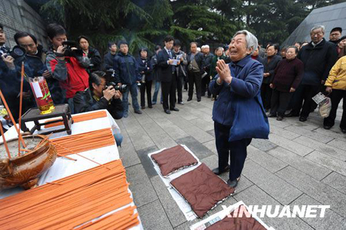 4月4日,一名南京大屠殺遇難者遺屬在名單墻前祭拜當(dāng)年遇難的親人。當(dāng)日,在綿綿細(xì)雨中,一批南京大屠殺幸存者及遇難同胞親屬,在侵華日軍南京大屠殺遇難同胞紀(jì)念館的遇難者名單墻前舉行儀式,祭奠在1937年被侵華日軍屠殺的親人和其他遇難的中國(guó)同胞。新華社記者 韓瑜慶 攝