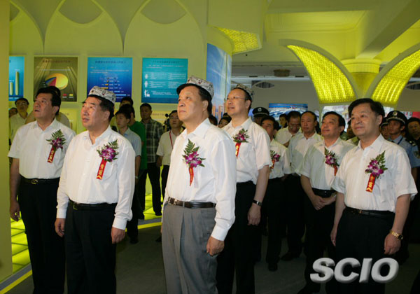回良玉、劉云山、杜青林參觀新疆維吾爾自治區(qū)成就展(國新辦楊同賀攝影)