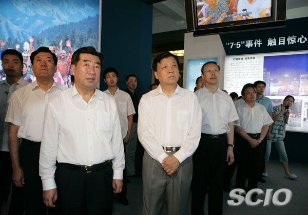 回良玉、劉云山、杜青林參觀平息烏魯木齊“7·5”打砸搶燒嚴(yán)重暴力犯罪事件紀(jì)實(shí)圖片展(國新辦楊同賀攝影)