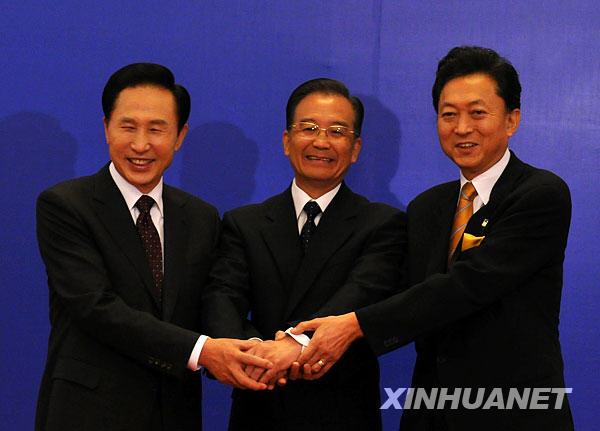 新華網(wǎng)北京10月10日電(記者廖雷、戰(zhàn)艷、干玉蘭)第二次中國、日本、韓國領導人會議10日在北京人民大會堂舉行。中國國務院總理溫家寶、韓國總統(tǒng)李明博、日本首相鳩山由紀夫出席會議。會議由溫家寶主持。在友好、務實的氣氛中,三國領導人回顧總結(jié)了中日韓合作10年歷程,展望規(guī)劃了三國合作的未來,并就共同關心的國際和地區(qū)問題深入、坦誠地交換了看法,達成廣泛共識。