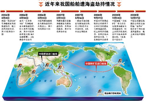 近年我國船舶遭海盜劫持情況 來源:廣州日報(bào)