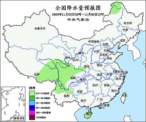 未來三天,我國(guó)降水較弱,在青藏高原東部、川西高原有小到中雪或雨夾雪,四川盆地、云南北部、海南有小雨或陣雨。