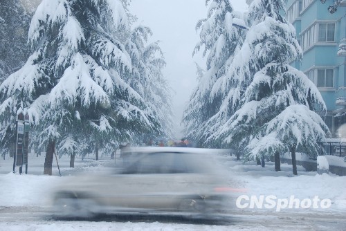 11月10日,石家莊降下初冬以來(lái)首場(chǎng)暴雪。降雪自11月9日夜開(kāi)始,當(dāng)日清晨大雪紛紛揚(yáng)揚(yáng)鋪天蓋地,把石家莊裝扮的銀裝素裹,樹(shù)梢、花草、建筑物上掛滿積雪。 中新社發(fā) 魏恒越 攝