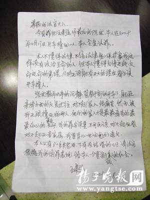 王建強(qiáng)的悔過書。