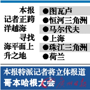 為立體報道這次大會,我們派出的采訪團已經(jīng)奔赴哥本哈根,將及時跟蹤報道扣人心弦的大會進展。與此同時,我們另外派出多路記者,同時奔赴地球上受海平面上升影響的地方。