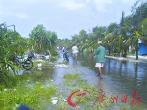 “天黑后千萬別出來跑步,因為一不小心就會跑到海里去,”記者在閑逛時竟然碰到了一個來自廣東的老鄉(xiāng)老羅,他警告記者,“圖瓦盧太小、地形又太平坦,漲潮時很多地方都會被海水給吞沒,甚至包括島中央的馬路!彼勸告記者別穿皮鞋,大潮時隨便一個海浪撲過來,就會直接沖過整個海島流到另外一邊,整個人都會被海水打濕。
