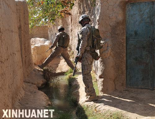 資料圖片:11月3日,兩名美軍士兵在阿富汗西部法拉省的一處谷地巡邏。新華社發(fā)