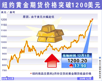 國(guó)際市場(chǎng)上黃金價(jià)格上漲的速度超出了市場(chǎng)的普遍預(yù)期。由于美元指數(shù)的沖高回落,以及受到多數(shù)黃金ETF的持金總量創(chuàng)下歷史新高等消息影響,國(guó)際金價(jià)在本周二傍晚時(shí)間一度突破1200美元/盎司整數(shù)關(guān)口,12月2日傍晚時(shí)間更是摸高至1217美元/盎司,再度刷新歷史。