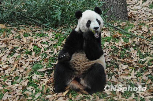 華盛頓國(guó)家動(dòng)物園四日宣布,按照中美雙方協(xié)議,在美國(guó)出生并健康成長(zhǎng)的大熊貓?zhí)┥綄⒂诙?一0年一月返回中國(guó),但確切歸還日期仍未最后確定。此外,泰山的父母,十一歲的“添添”與十歲的“美香”,明年十二月也將租借期滿,他們的未來(lái)預(yù)計(jì)要在明年春天后才會(huì)進(jìn)行正式討論。圖為四日上午泰山的爸爸大熊貓?zhí)硖砣圆恢磳⒐侨夥蛛x獨(dú)自吃早餐。 中新社發(fā) 吳慶才 攝